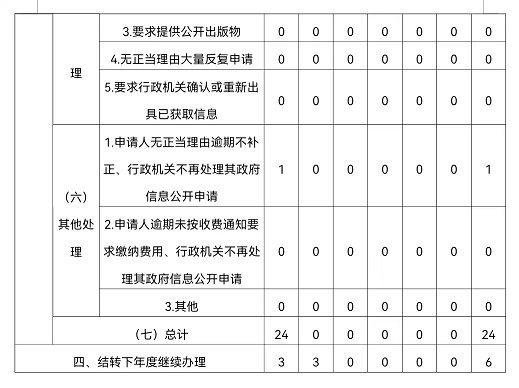 我縣始終不斷暢通公眾獲取政府信息渠道、提升答復辦理能力、夯實依申請公開工作機制,充分保障群眾的知情權。從實體答復和程序處理兩方面入手,規范依申請答復工作。全面加強政府信息依申請公開制度建設,不斷完善受理、函詢、檢索、審查、處理、答復以及存檔等各個環節流程,進一步規范政府信息依申請公開辦理流程。同時,堅持柔性答復,從服務便民出發,綜合協調疑難申請件辦理,答復前充分做好申請人溝通協調、相關部門聯合會商和法律顧問嚴格把關,最大限度為申請人提供相關政府信息,切實保障申請人權利,維護政府公信力。左云縣2024年收到依申請公開30件,其中,24件在法定期限內均予以答復;1件逾期未補正信息,放棄申請;轉下一年辦理6件。